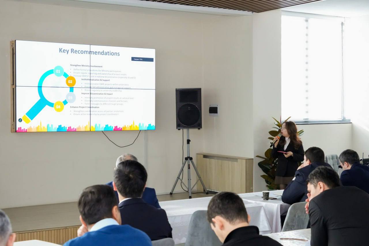 Sessiya davomida oliy ta’lim muassasalarining ma’muriy va akademik xodimlari, shuningdek, soha mutaxassislari Erasmus+ loyihalarini amalga oshirish bo‘yicha tajriba almashib, CBHE (Capacity Building in Higher Education) loyihalarining eng yaxshi amaliyotlarini muhokama qildilar.